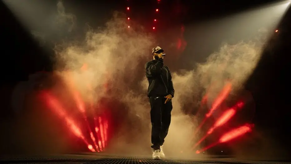 Plus de 40 000 personnes étaient présentes ce soir-là (avant que 40 000 autres le soient samedi, et encore 40 000 dimanche pour la dernière date). Baptisé Nemesis, le concert se lance avec une salle chauffée à bloc et un speaker qui annonce “le boss au 30 ans de règne.” C’est ici que Booba apparaît sur une passerelle à la Jules César avec le morceau AC Milan.